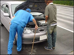 エンジンルーム内の検査を行う場合は、エンジンを停止し、ボンネットを開け、支持棒等により保持した状態として、検査官の指示に従ってください。